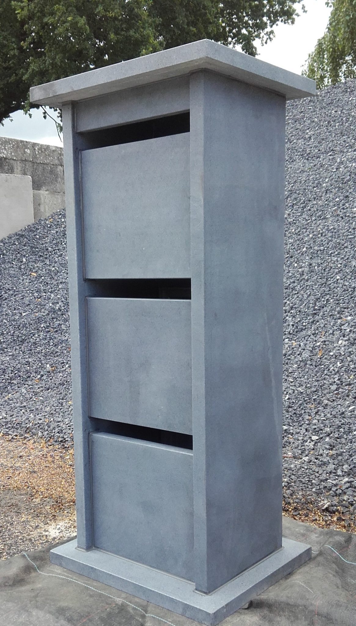 Al onze brievenbussen worden ontworpen en geproduceerd in onze ateliers te Keerbergen. Ondanks de extreem hoge kwaliteitseisen die we nastreven, zijn we erin geslaagd deze hedendaagse brievenbussen in zwarte en/of grijze Graniet en Blauwe Steen aan uiterst scherpe prijzen op de markt te brengen. Elk exemplaar is uitgerust met een aluminium deurtje dat voldoet aan de strengste eisen. Bovendien worden de brievenbussen verlijmd met de allerbeste steenlijm, wat garant staat voor een stevige brievenbus!
